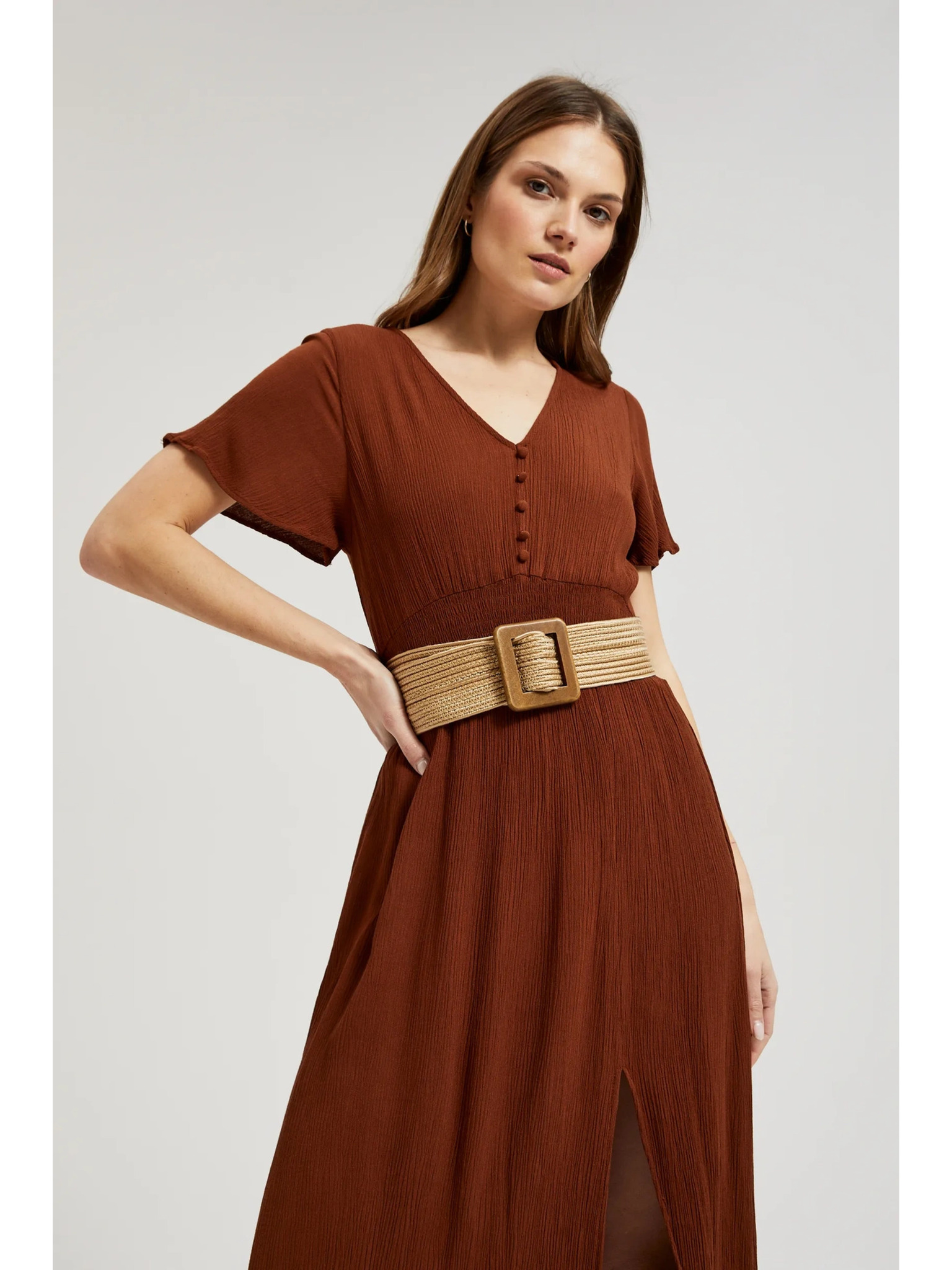 Curea maro pentru femei cu detalii aurii Moodo