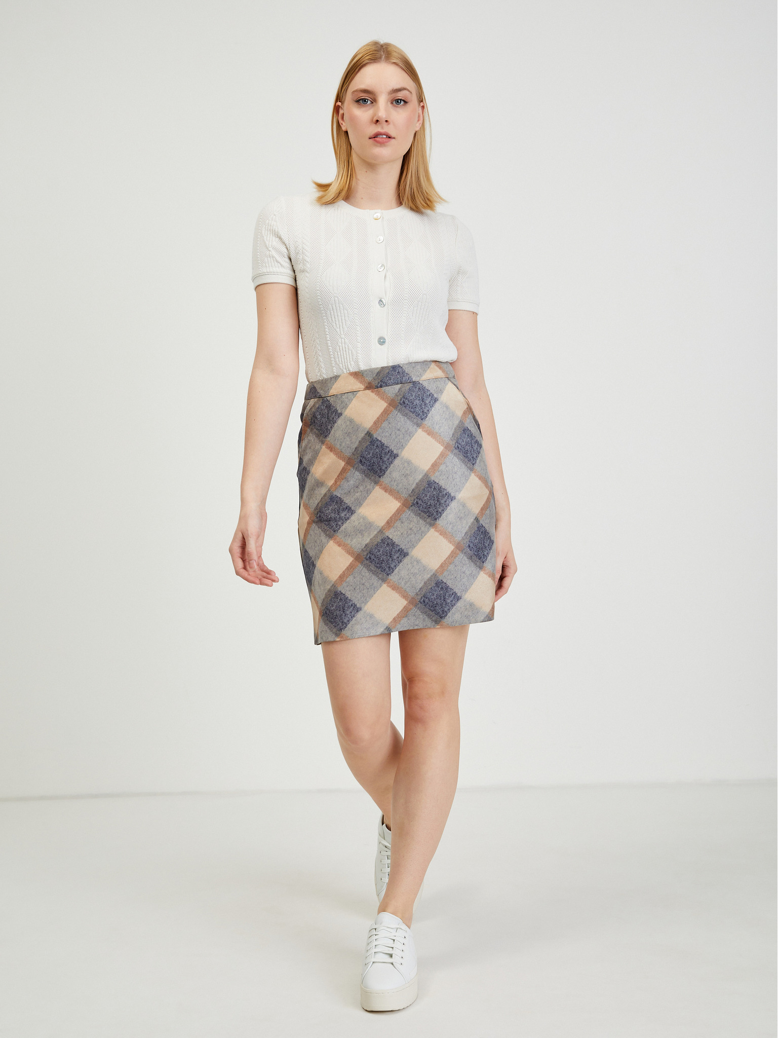 Fustă din tweed pentru femei albastru și crem ORSAY