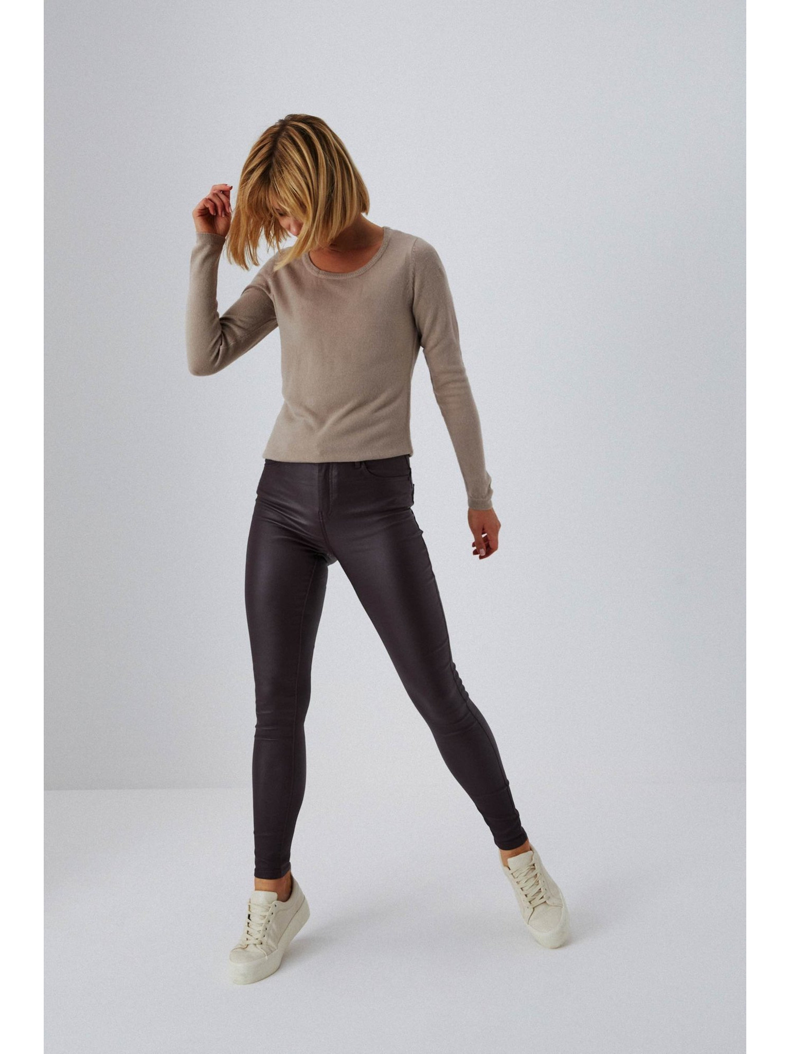 Pantaloni de damă maro deschis cu finisaj de piele întoarsă ORSAY