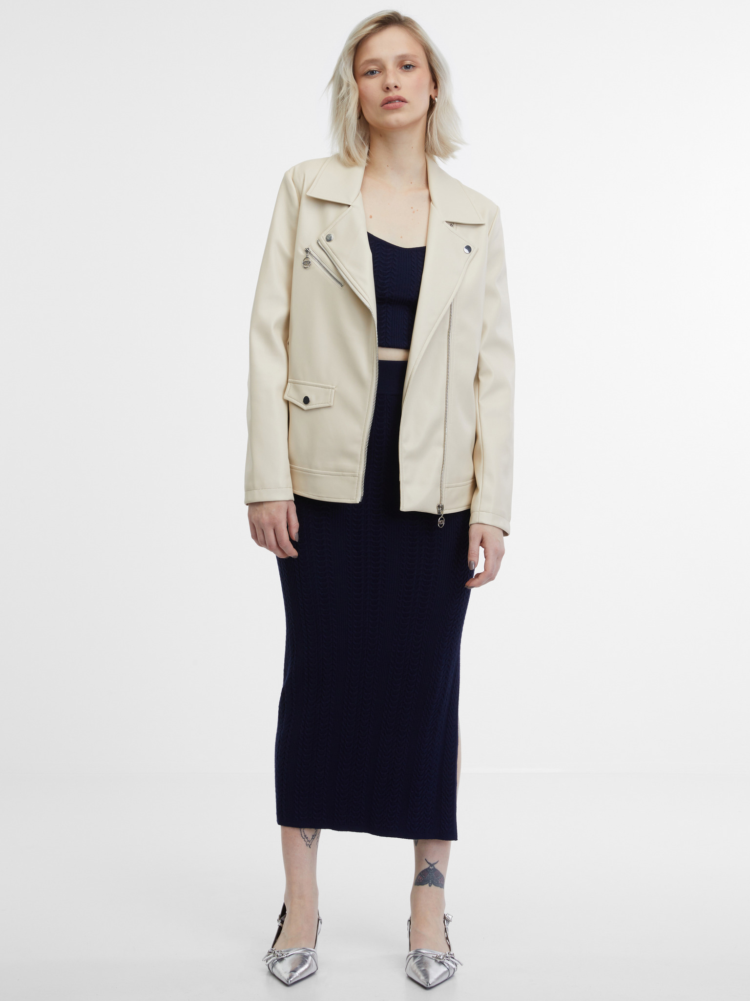 Jachetă din piele ecologică cremă pentru femei ORSAY