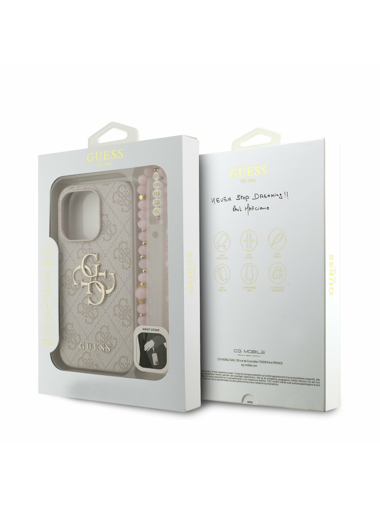 Guess PU Piele 4G Inel Colorat Curea MagSafe Carcasă Foto pentru iPhone 14 Roz