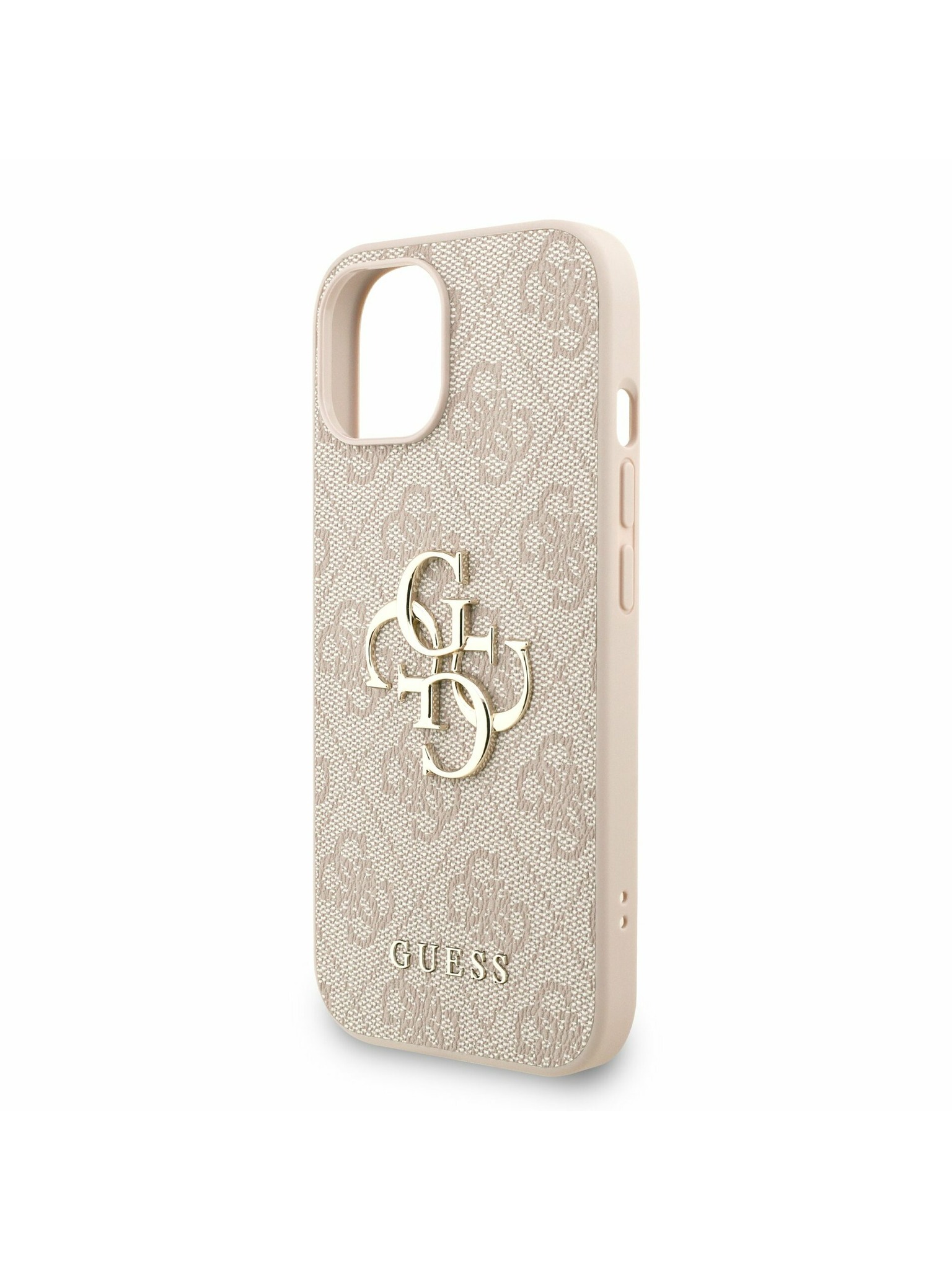Guess PU Granulat Trandafiri 4G Metal Logo Carcasă spate pentru iPhone 16 Pro Roz