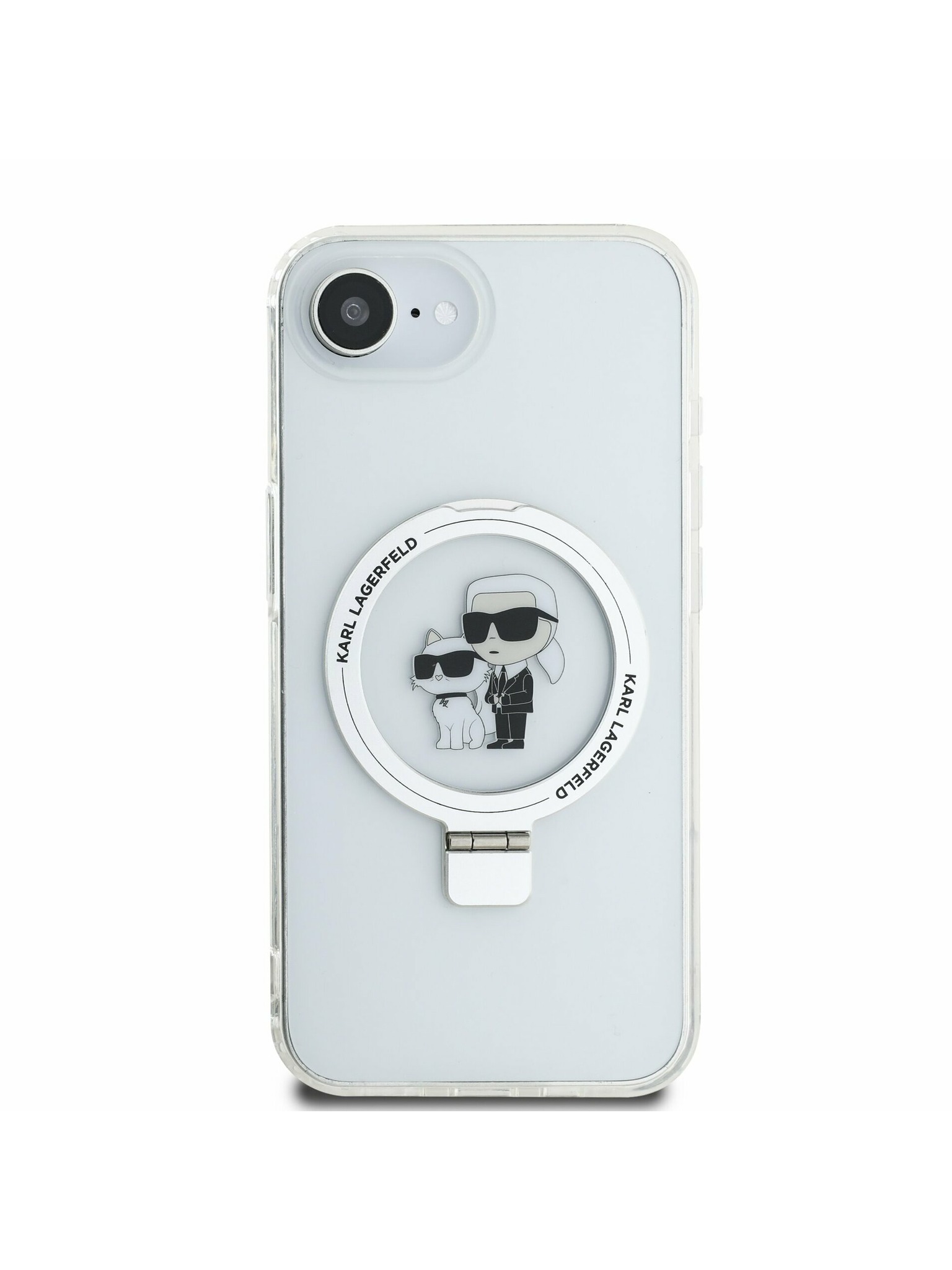 Ringstand Karl and Choupette MagSafe Carcasă Spate pentru iPhone 15 Pro Max White Karl Lagerfeld