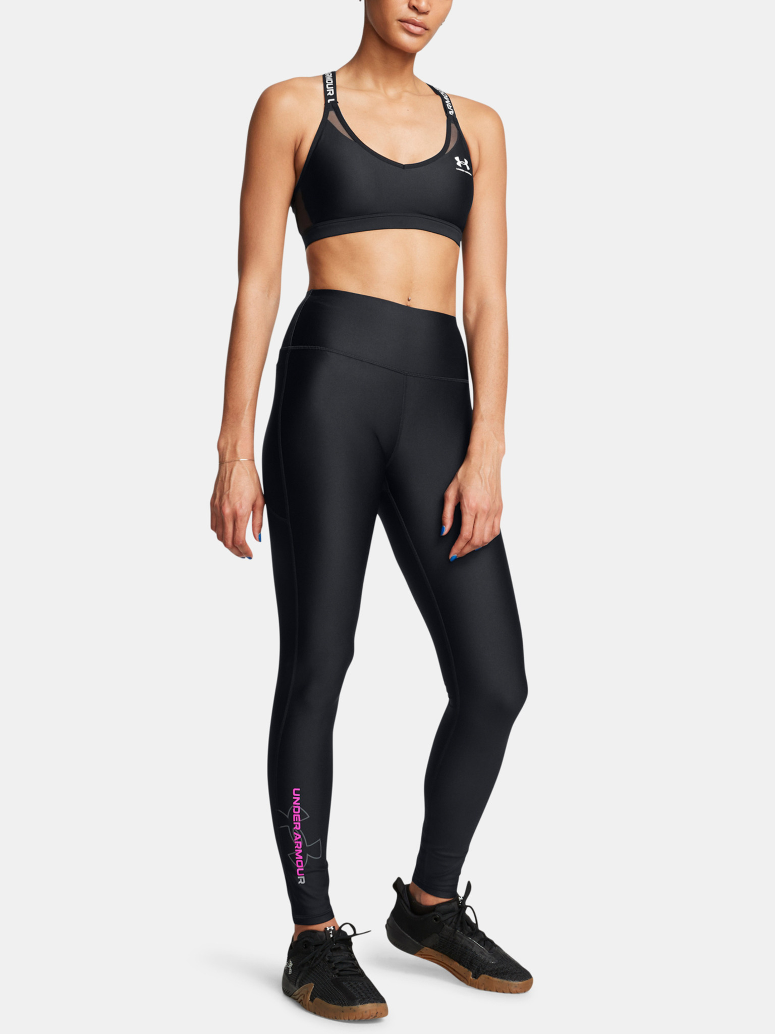 • Talia cu croială înaltă UA No-Slip, pentru o acoperire și un suport optime, rămâne pe poziție la fiecare mișcare