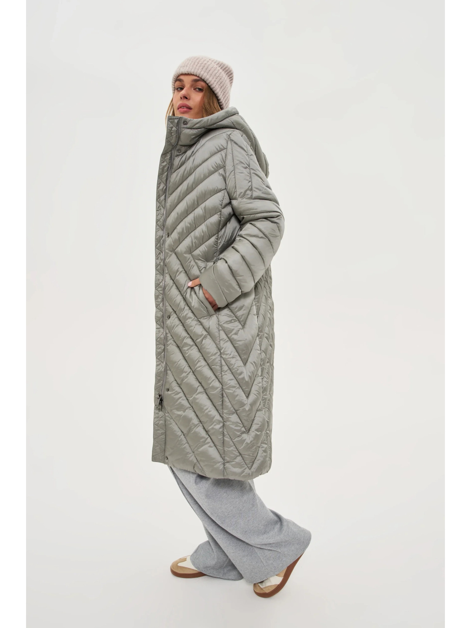 Geacă lungă matlasată kaki pentru femei ORSAY