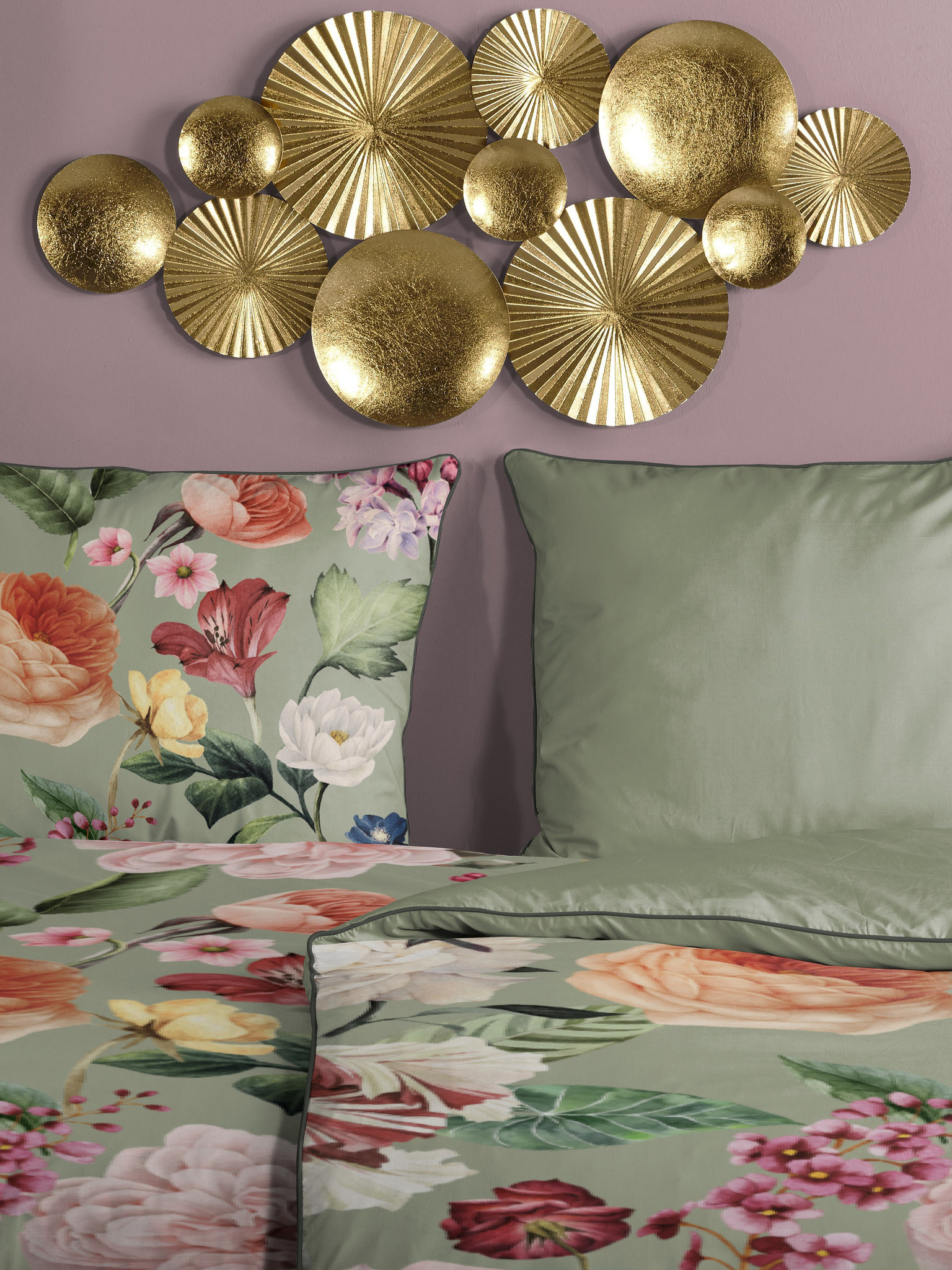 LUXURY COLLECTION lenjerie franceză satinată 1+2, 240x200, 70x90cm verde închis / crem