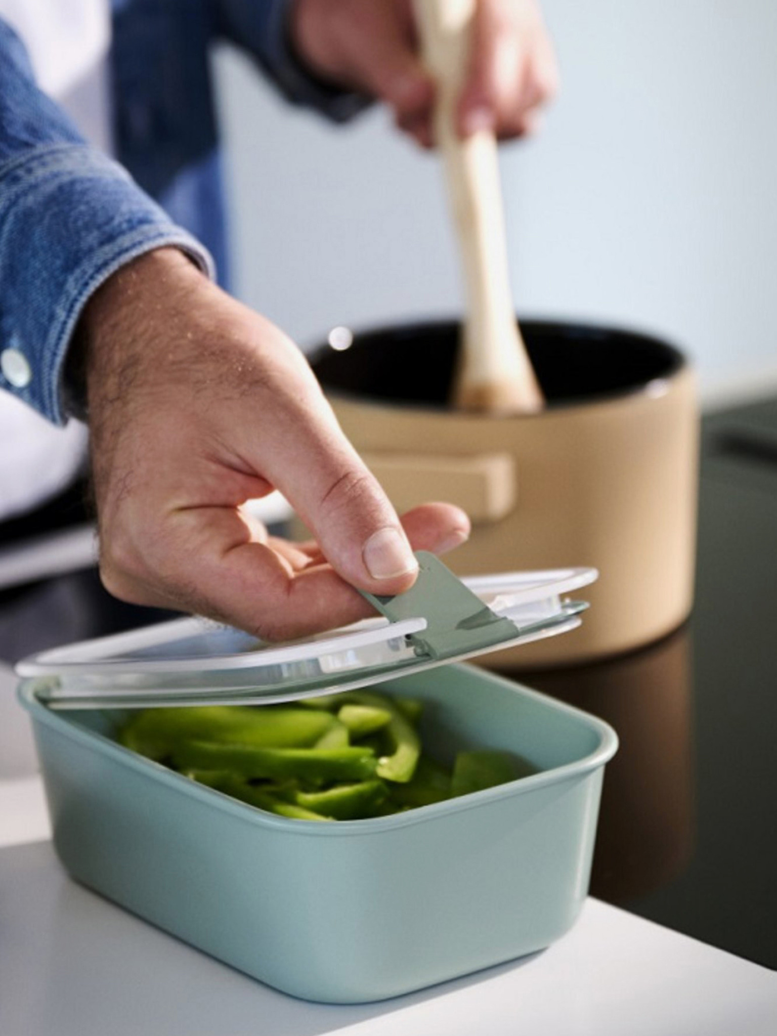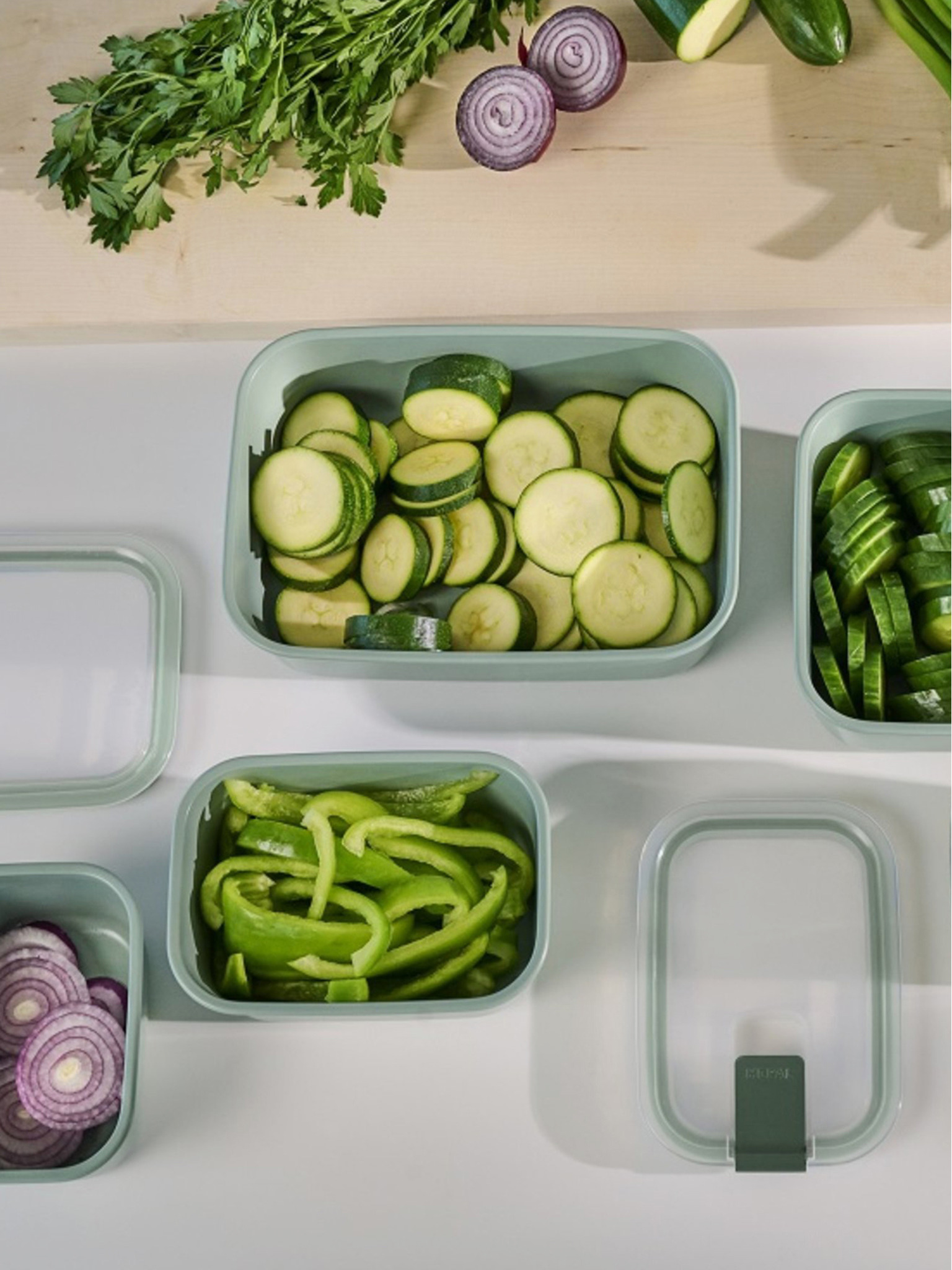 Set de boluri Mepal Cirqula Rectangular 750 +1500 + 3000 ml de culoare verde deschis